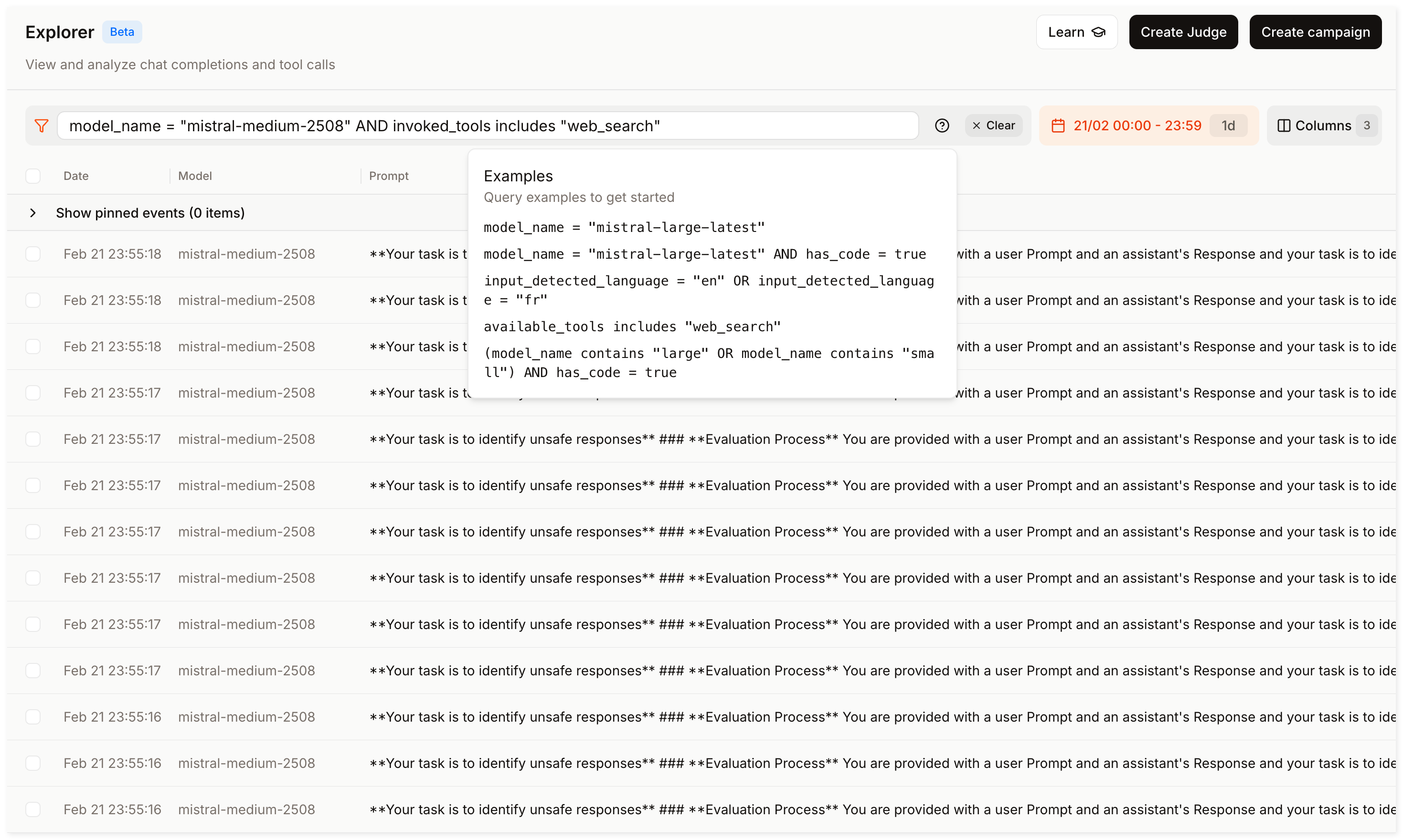 mistral-medium-2508). - Experiment with filters until you find a combination that suits your needs. For example: