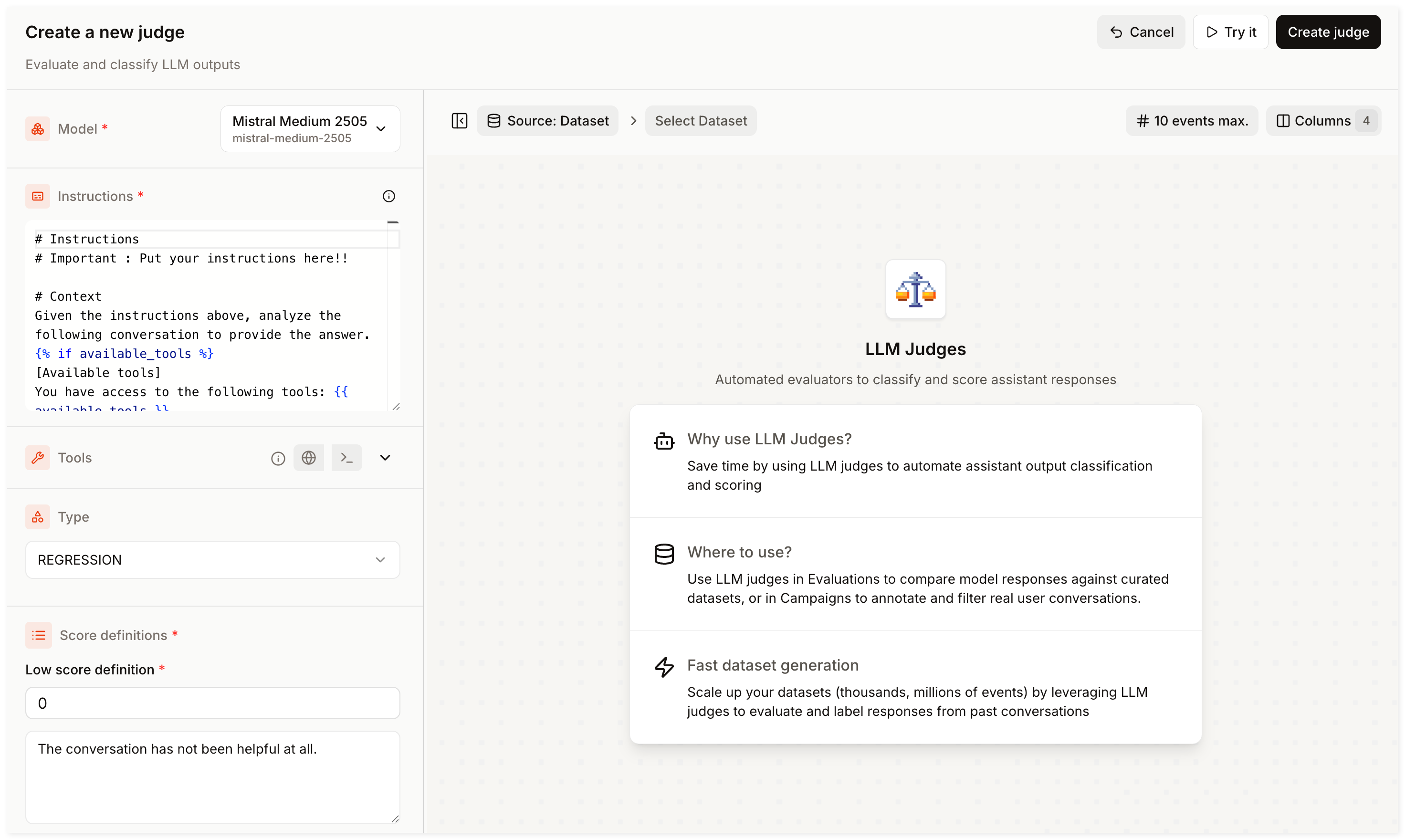Click Create Judge, provide a name and description, and confirm.