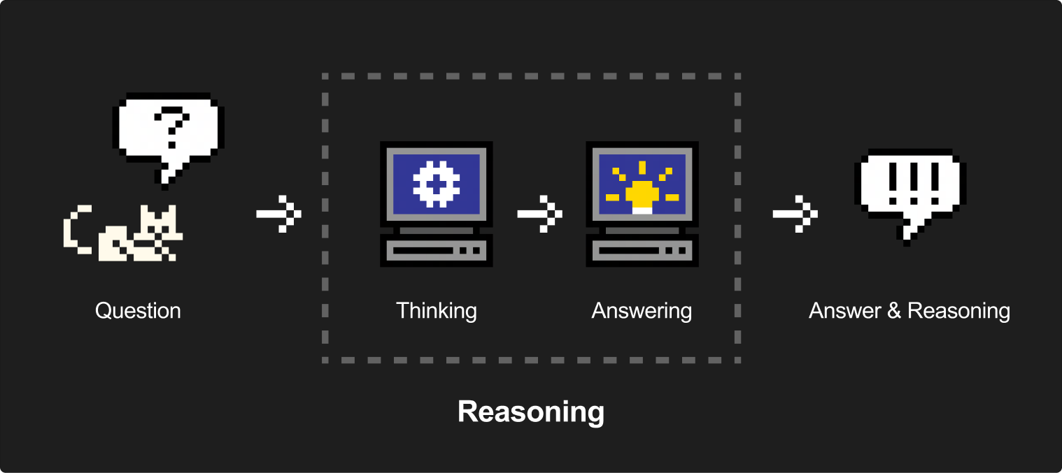 Reasoning is the next step of CoT (Chain of Thought), naturally used to describe the logical steps generated by the model before reaching a conclusion. Reasoning strengthens this characteristic by going through training steps that encourage the model to generate chains of thought freely before producing the final answer. This allows models to explore the problem more profoundly and ultimately reach a better solution to the best of their ability by using extra compute time to generate more tokens and improve the answer—also described as Test Time Computation.