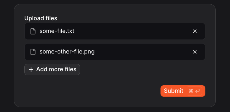 attachments: list[str] = FileField(description="Upload files", multiple=True)