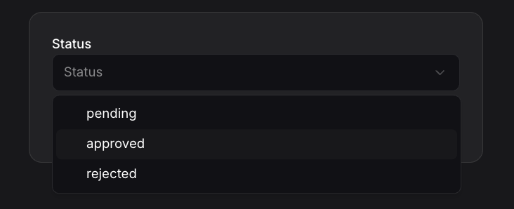 options=["pending", "approved", "rejected"],