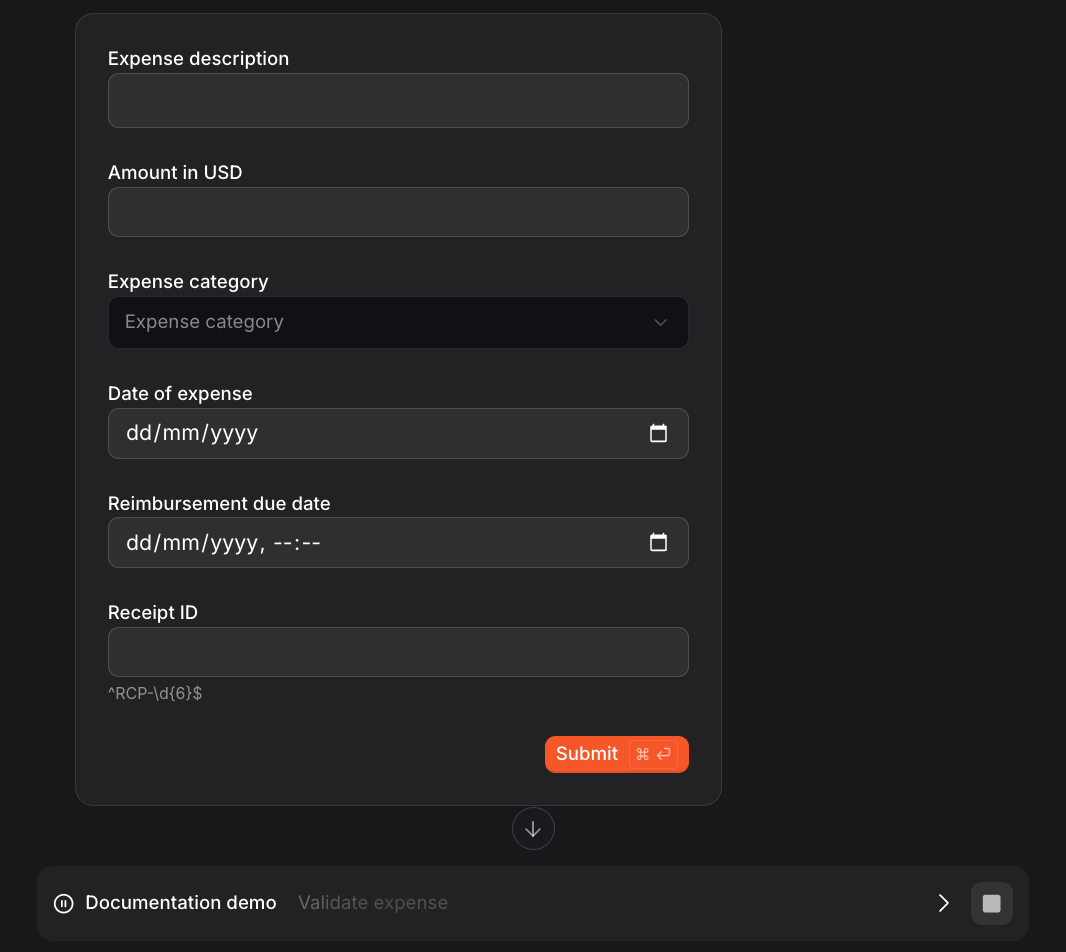 workflow_description="Submit an expense with structured form",